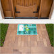 With this Retro Kitchen Door Mat, you can have your pie and eat it, too. This kitschy, minimalist art drawing features a perfect 1950's housewife, in her mid century modern kitchen. The beautiful baker is wearing a flouncy, green dress and a white apron with red detailing. Not a hair on her blonde head is out of place. In one hand, she is holding the fruit of her labor--a gorgeous, lattice topped, fruit pie. One glance and you'll know that her flaky pie crusts are second to none. She is standing on an aqua and teal checkerboard floor, which is undoubtedly clean enough to eat off of. Against an aqua wall, we see teal cabinetry with aqua trim work, a red countertop, red drawer pulls, and black starburst accents. A red, starburst clock is hanging on the wall. To the side, there is a state of the art, white refrigerator with silver handles. At least, the fridge was state of the art in 1950's. Now, it's just plain dreamy! Whether you're Suzie Homemaker or simply have an affinity for all things vintage, you're sure to love this scrumptious slice of Americana.