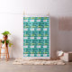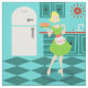 With this Retro Kitchen Fabric, you can have your pie and eat it, too. This kitschy, minimalist art drawing features a perfect 1950's housewife, in her mid century modern kitchen. The beautiful baker is wearing a flouncy, green dress and a white apron with red detailing. Not a hair on her blonde head is out of place. In one hand, she is holding the fruit of her labor--a gorgeous, lattice topped, fruit pie. One glance and you'll know that her flaky pie crusts are second to none. She is standing on an aqua and teal checkerboard floor, which is undoubtedly clean enough to eat off of. Against an aqua wall, we see teal cabinetry with aqua trim work, a red countertop, red drawer pulls, and black starburst accents. A red, starburst clock is hanging on the wall. To the side, there is a state of the art, white refrigerator with silver handles. At least, the fridge was state of the art in 1950's. Now, it's just plain dreamy! Whether you're Suzie Homemaker or simply have an affinity for all things vintage, you're sure to love this scrumptious slice of Americana.