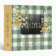 Rustic country trendy farmhouse kitchen personalized cooking recipes organizer binder with vintage barn wood, sage green and white gingham pattern, and yellow sunflowers botanical bouquets. ++++++++++ Personalize it with your monogram, name and text on front and spine! +++++++++ It can be a modern personal recipe cookbook for your kitchen, a family grandma's recipes collection, or a beautiful keepsake gift for a bridal shower, wedding, birthday, Christmas, or for a chef.