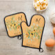 Retro kitchen floral monogram name oven mitt & pot holder set