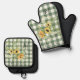 Retro kitchen floral monogram name plaid oven mitt & pot holder set