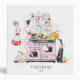 Retro kitchen recipe binder features glamorous woman sitting on a stove while cooking. Perfect for bridal showers.