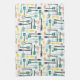 A Retro Yellow Black And Green Kitchen Dish Towel Patterned In Kitchen Utensils
