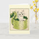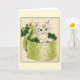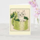 Vintage / Retro Saint Patrick's Day Note Card. Precious little white kitten popping out of a shamrock filled hat box! Perfect for cat lover!