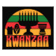 Retro 60-70 feel Kwanzaa with a Kinara, unity cup, corn, and gift in gold, green, red, and black.
