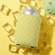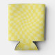 Retro Lemon Yellow Pastel Warped Checkerboard Can Cooler