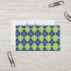 Lime green and bright blue argyle decorates this stylish business card. Customize the card to suit your needs, add or delete information etc...Use these business cards for a business, hair stylist, shop, golf course, golf pro, landscaping, lawn care, tutor, stylist, consultant, planner, coordinator, teacher, child care, cosmetologist, makeup artist, designer, barber, salon, hair salon, spa, accountant, restaurant, boutique, etc...The design is from original art.