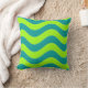 Retro Lime Green and Teal Wavy Psychedelic Pattern Throw Pillow