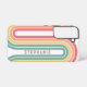 A funky line arch pattern with pastels - blue, green, yellow, orange and red. The retro design includes curves and lines in thick colors. Add your name or delete the text for a fun retro cover. The name is a trendy outline font in gray.
