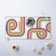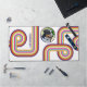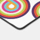 This design features retro bohemian curved line art in colorful stripes. Unique artsy personalized desk mat with round frame template for your dog photo and editable name text. Easily personalize this table mat to make it yours. If you need help for the customization of the product or need more products from this collection please message me via Zazzle.