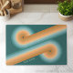 A bohemian curved design with a striped pattern and circular shapes in teal, orange and brick red sunset colors. A bold yet minimal design with an optional area to add text.