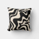Retro Liquid Swirl Abstract Pattern Black & Cream Throw Pillow