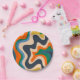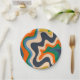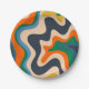 Retro Liquid Swirl Abstract Pattern Blue Orange Paper Plates