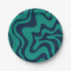 Retro Liquid Swirl Groovy Abstract Blue and Teal Paper Plates