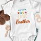 Dog's Little Brother ! Introducing the cutest baby bodysuit for your little one - perfect for the little dog lover in your life! This bodysuit is adorned with the words "Dog Name...Little Brother" in bold and fun lettering, along with adorable paw prints. The teal, terracotta, and orange colors add a colorful and playful touch to the design.