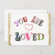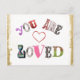 Retro Look: You are Loved Postcards. Vintage inspired design with mixed up retro letter design and gold sparkle inspired edging. Find more at Quote Life Boutique. Link below: