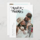 Vintage and simple wedding thank you card featuring a white arch frame with a text that says "love & thanks" in a retro style font with stars. The default message on the back is editable. A second square picture can be added on the back of the card.
