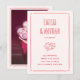 Spanish wedding invitations. Fun wedding invitations with your names in bold capitals and a whimsical, hand-drawn cupid illustration. There is a doodle scribble style frame and the event details are in a handwriting-style typography. Cards reverse to the same frame around an engagement photo of your choice. Perfect for spring or summer, romantic "love struck" and Valentine’s themes. We have chosen a bold red color against a pink background, but all colors are fully editable to suit your wedding theme. View the collection linked on this page for the full wedding suite or visit our store for more wedding invitations. An English-language version of this design is available in our store for bilingual weddings. Plantilla de invitación de boda en español. Invitación editable con foto y diseño retro con cupido dibujado a mano.