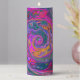 Retro Magenta, Green and Orange Abstract Swirl Pillar Candle