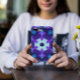 This retro mandala design features blue and purple in a flower pattern. Funky and vibrant visuals for anyone who likes bright colors!