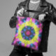 Retro Mandala Flower Blue Yellow and Pink Tote Bag