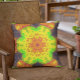 Retro Mandala Flower Orange Yellow and Green Throw Pillow