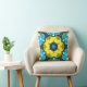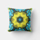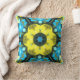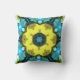 Retro Mandala Flower Yellow and Blue Throw Pillow