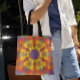 Retro Mandala Flower Yellow Orange and Purple Tote Bag