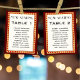 Dark red / burgundy retro cinema movie theater marquee sign wedding seating chart & table number card with guest names. Personalize the text with the names of your guests. Great for a vintage wedding look and feel.