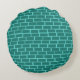 This Retro Martini Couple Round Pillow looks like a scene out of a romantic comedy. The setting of this 1960's style, minimalist art design is an elegantly decorated, mid century modern house or apartment. The cast is an attractive couple enjoying an evening filled with sparkling conversation, good music and bottomless drinks. The room features a green floor, and an aqua and teal brick wall. Resting comfortably in a mod, orange egg chair is a beautiful woman. Her bright pink dress is just short enough to show off her shapely gams. With the wave of a hand, this blonde beauty has the immediate attention of her male admirer. Her fair haired companion is wearing a blue suit, white shirt and black bow tie. In his hands, he is holding two, crystal martini glasses with floating olives. Don't worry. He's offering one to his lady friend. The pair is having such a delightful time that neither is taking notice of the hour showing on the kitschy, red, starburst clock on the brick wall behind them. On a recessed fiery red wall, there are three Classic Movie Martini Stretched Canvas Prints, also available from StrangeLittleOnion's Zazzle store (hint, hint!) Two of the prints feature turquoise backgrounds and one is on a dramatic black background. Centered beneath the prints is an elegant wet bar. The front of the teal bar has three harlequin diamonds, in shades of orange, turquoise and green. We can see the silhouettes of martini glasses resting on the counter top. Across the room, an orange ottoman is holding a blue and black, portable record player. On the floor, we see the vinyl records and a bright yellow album cover. This attractive duo is having such a delightful time that neither is taking notice of the hour showing on the kitschy, red, starburst clock on the brick wall behind them. The opposite side of this fun throw pillow features a teal and aqua brick pattern.