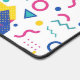 This seamless Memphis-style pattern features playful geometric elements—squiggles, triangles, dots, and zigzags—arranged in a lively composition on a crisp white background. Designed in high-contrast colors like blue, pink, yellow, and teal, this vibrant and retro-inspired artwork adds a bold pop of personality to any product. Ideal for fashion, home decor, and stationery, it celebrates the quirky charm of 1980s design with a modern twist.