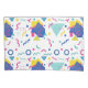 This seamless Memphis-style pattern features playful geometric elements—squiggles, triangles, dots, and zigzags—arranged in a lively composition on a crisp white background. Designed in high-contrast colors like blue, pink, yellow, and teal, this vibrant and retro-inspired artwork adds a bold pop of personality to any product. Ideal for fashion, home decor, and stationery, it celebrates the quirky charm of 1980s design with a modern twist.