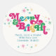 These whimsical 3" round stickers feature the greeting, "Merry & Bright," in large colorful retro letters along with placeholders for your name and return address.