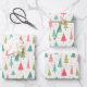 Retro Merry Christmas Trees Fun Holiday Pattern Wrapping Paper Sheets