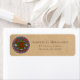 Customizable classic Mexican Hispanic tribal Aztec calendar sundial or sun stone return address label on kraft paper background. This label features a colorized version of the famous classic Mexican Hispanic Pre-Columbian Aztec calendar sundial also known as the sun stone. The sun stone is perhaps the most famous of all Mexican sculptures and most iconic traditional symbol of ancient, indigenous Mexico. The original monolithic stone was carved by the Mexica people at the close of the Mesoamerican Postclassic Period. Despite the fact that the exact date of the sun stone's construction has never been determined, the identifying glyph of the Aztec king Moctezuma II, at the center of the disc, indicates that the monument dates to his ruling period from 1502 and 1520.