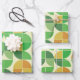 Retro Mid Century Geometric Floral Green Wrapping Paper Sheets