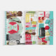 This 2026 calendar kitchen towel has a retro mid century kitchen art design printed on it. A fun grandma's kitchen shelves from the mid century modern time with lots of canned foods and kitchen gadgets and utensils. Great gift for any mid mod decor lover.