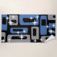 Colorful Retro Mid Century Modern Abstract Pattern in Black Gray & Blue.