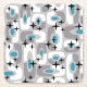 Retro Mid Century Modern Cosmic Abstract Pattern Black Gray White & Blue..