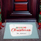 This holiday doormat showcases mid-century modern 1950s-inspired typography and is accented with charming starbursts and snowflakes, presented in muted teal and red tones. Personalize this nostalgic mug with your name.