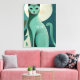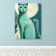 Add some feline flair to your home decor with this charming cat-themed canvas print! Featuring a retro mid century abstract style design in elegant green tones, this canvas is perfect for cat lovers who appreciate a touch of vintage charm. The print also includes the word "Meow" in a fun retro font that can be customized to your liking. Whether you're looking to decorate your living room, bedroom, or home office, this canvas print is sure to delight both you and your furry friends.