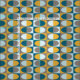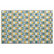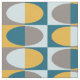 This atomic era-inspired abstract art pattern has ovals inside rectangles in various shades of blue and yellow-orange.