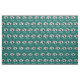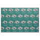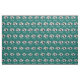 Personalize this fun retro camper trailer fabric with your own text if desired. Repeating offset pattern of camper trailer images, "Happy Campers" script text and mountain backdrop. Turquoise blue and white trailer on dark teal blue.