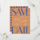 Let your love story stand out with this bold, retro-inspired Save the Date card! Featuring a vibrant checkered pattern in classic orange and cobalt blue, this design is perfect for couples who want to ditch the ordinary and go full-on editorial chic. 💌