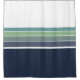 Fun retro/mod navy blue, teal, and green striped shower curtain gives that fun 70's/80's feel to your bathroom. Simple and minimalist, it's a bright yet soothing pop of color that blends well with many design styles, from retro to transitional to nautical.