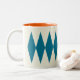 Retro Mod Blue Diamond Pattern Two-Tone Coffee Mug