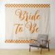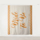 Mod bride to be backdrop, With a groovy retro orange color and cream checkerboard pattern border.