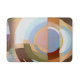 A retro Art Deco style bath mat with a modern abstract twist featuring a stylish painted graphic circle pattern in rich warm browns and soft powdery blues. Choose from 3 sizes.