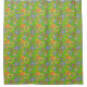Bright and colorful throwback pattern features multi-ringed circles of a variety of sizes and colors on grass green background.