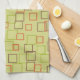 A retro Lime green and orange pattern decorates this stylish kitchen towel. The design is from original art.